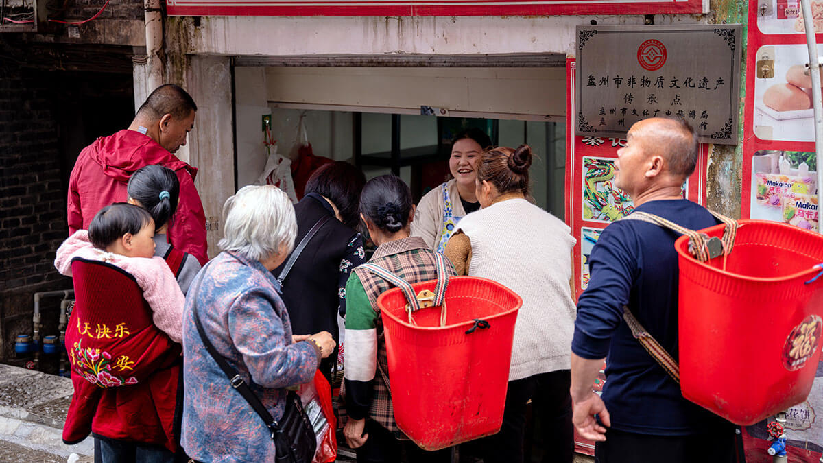 草木灰里的时光密码,在古城的四合院里,阿婆们将糯米浸泡在草木灰水中,指尖翻飞间,三角状的灰粽裹进秘制腊肉与板栗仁。这种源自明代军屯饮食智慧的灰水粽,用草木灰的碱性激发出糯米的清甜,配以盘州特有的高山野栗,每一口都嚼得出古城人对自然的敬畏。街边黄粑作坊里,粳米与黄豆经柴火慢熬成金黄油亮的糕团,清甜的米香飘过城门洞的飞檐,与书卷气融成独特的端午味道。